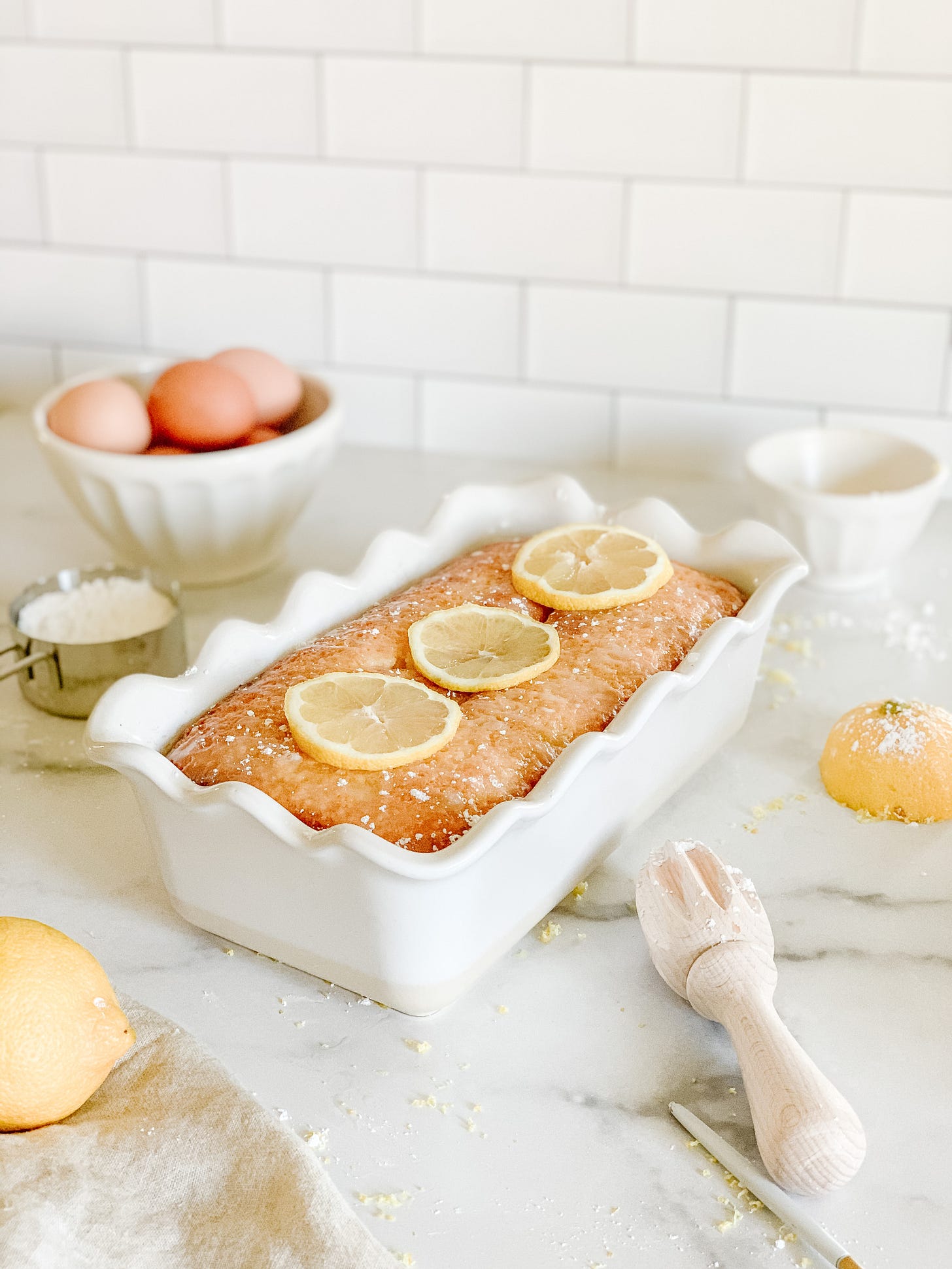 Allow lemon loaf to cool for 10-20 minutes before transferring to a wire rack and slicing.