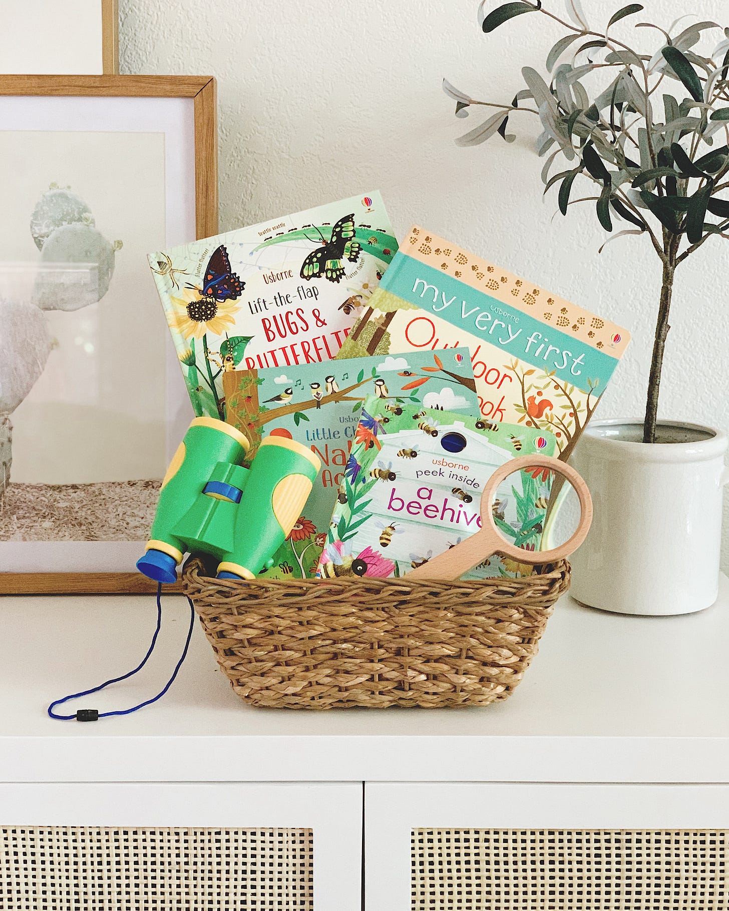 A handful of nature-themed books (bugs, bees, outdoor stories, anything with pictures)